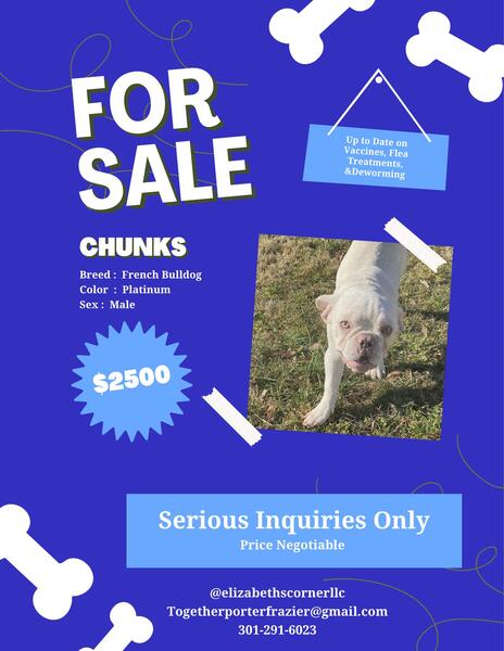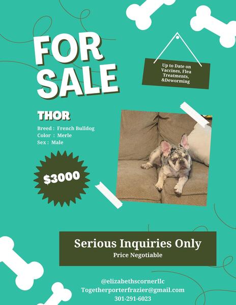 message thecorner about this ad French Bulldog just made a year up to date on vaccinations, dewormer, and flea and tick treatment. They are crate trained. Their ears do what they want they are dogs and they werent taped! Two male French bulldog: Merle $300 , platinum and shade $300 and Female platinum and new shade $500. All three dogs are intact. Serious Inquiries only. Really want them to find happy homes. If you arent serious dont message me! I wont be answering any questions. Accepting reasonable trades no dogs. |