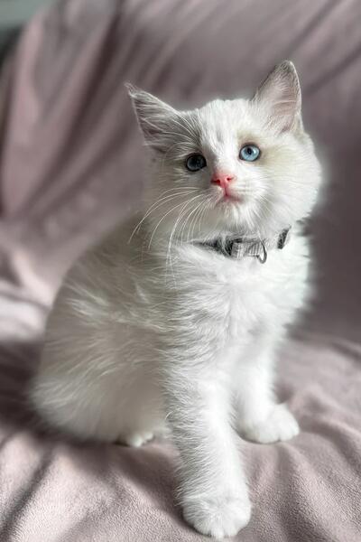 message annespurrkennel about this ad Meet Donald, a 5-week-old purebred Ragdoll with a snow-white coat and crystal-blue eyes. Hes calm, cuddly, and already loves gentle attention. Donald has received all vaccinations and comes with a passport, ready for his forever home. If youre looking for a sweet, affectionate companion with a silky coat and the true Ragdoll charm, Donald is the one. Message now to reserve him! |