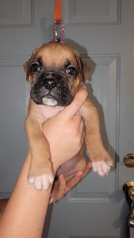 message nictimber5 about this ad AKC Boxer Puppies with Champion and Old German Bloodlines. Big, stocky parents, smart, excellent temperament and personality. Dam is a flashy fawn 70lbs and Sire is a Flashy Reverse Brindle 95lbs Pups are raised in my home with my kids and are socialized with other dogs and farm animals. Personal and Vet References available, been breeding for 25+ years Pups will come with Tails and Due claws docked, 1st shots, all wormings, Vet check and health guarantee Puppies will be ready for new homes August 19th Litter is All Females with Whites, Brindle and Fawn Available $200 Deposit to hold puppy, with come with Health guarantee contract Family Pet (No papers) price is $1600 Limited AKC papers $1700 Full AKC Breeding Rights to select homes $1800 |