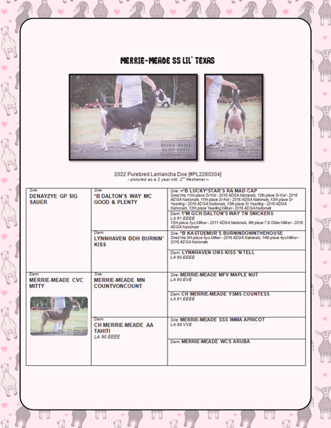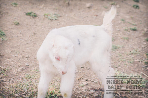 message merriemeadefarm about this ad Merrie-Meade JAN Snowcone, $400 Purebred Lamancha Doe Born 03/27/25 Sired by Merrie-Meade MIK Jantsen (Fox's Pride RWA Mikkeller x CH Merrie-Meade IA Jackie) Out of Merrie-Meade SS Lil' Texas (Denayzye GP Sig Sauer x Merrie-Meade CVC Mitty) + currently on a bottle 3x a day, plus free choice hay and small amount of grain + comes with ADGA registration application + raised on a disease prevention program (all births attended, kids receive heat treated colostrum for the first 48 hours, followed by a mix of pasteurized cow and goat milk) + disbudded + CDT vaccinated + prices are firm, and we do not hold kids until weaning + home preferred with previous livestock/bottle raising experience |