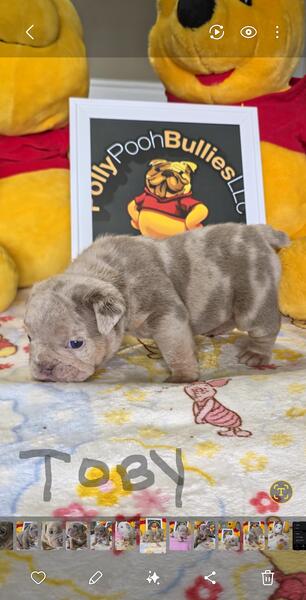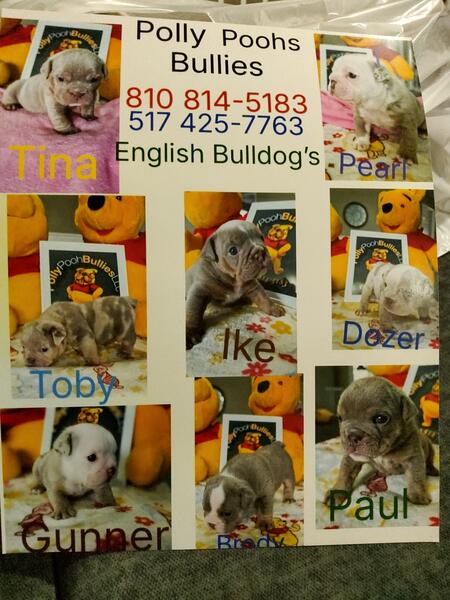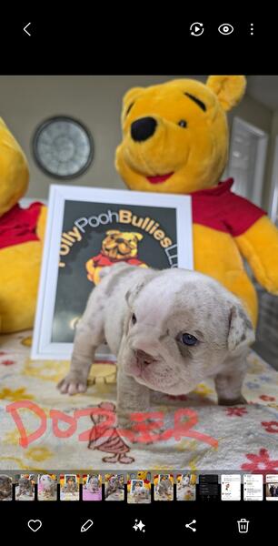 message knlng4699 about this ad English Bulldog AKC registered 6 Male and 2 Female that's 4 weeks young 1 platinum Merle 4 Lilac Merle and 3 Lilac big rope short and compact looking for there Fur-Ever home. Call or text 8108145183 |