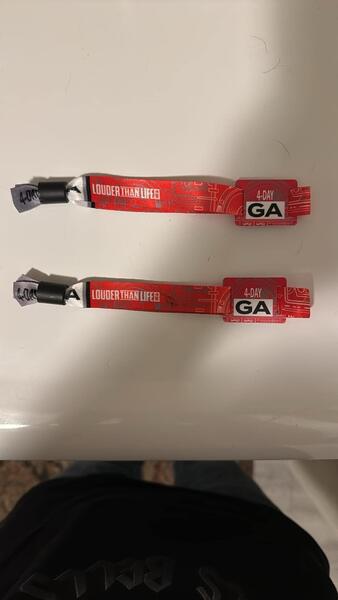 message nclmhgms1k1 about this ad All 4 days Louder than Life GA wrist bands Two wrist bands Dates 26th-29th Sept. Pickup in Grove City OH immediately Look up what bands are there, your jaw will drop if your a rocknroller! |