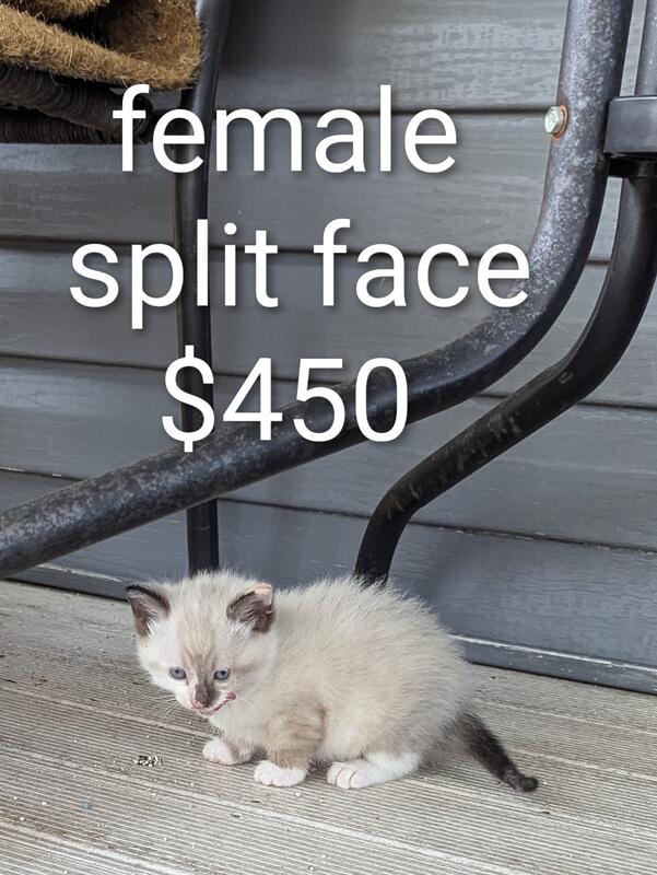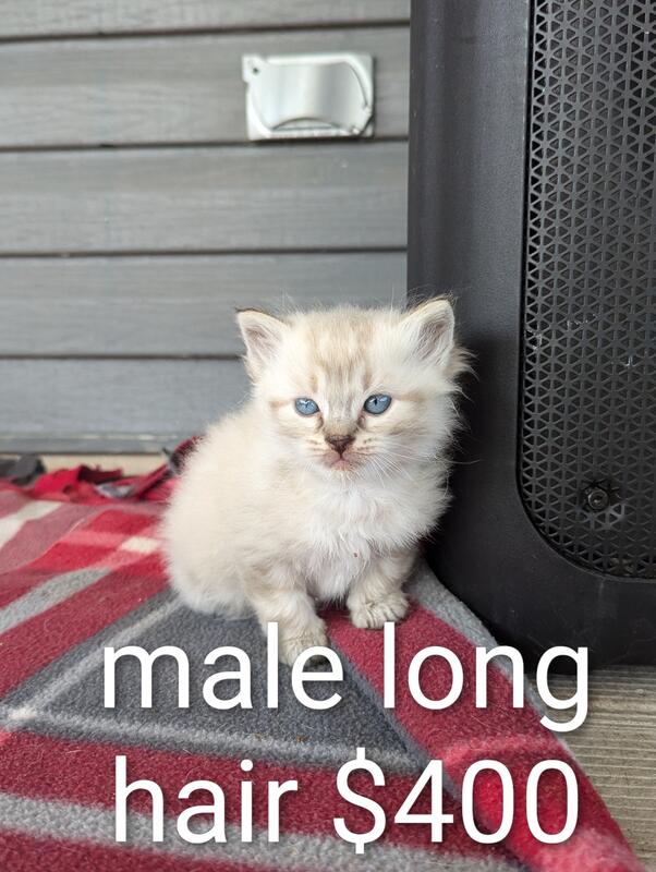 message papakurt about this ad I have two left a male split face and a female. The mom is a ragdoll and the dad is a Himalayan. They were born Aug 5th and are already litter box trained and eating solid food. Both will come with their first shots. Also one male lynx stripes left. |