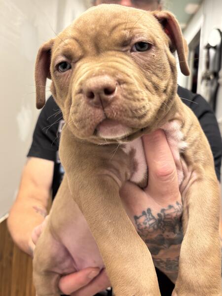 7weeks old 1 male sitting at 17pounds 1 red female sitting at 13lb and 1 white 10lb