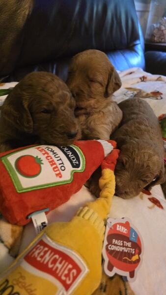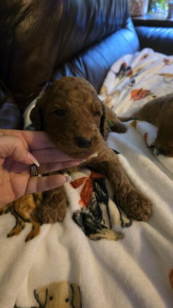 message angelcompanions1 about this ad Beautiful red goldendoodle puppies available they are f1b hypoallergenic non shedding, 1 male 2 females |