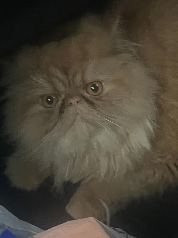 Orange Persian cat fixed and up to date on vaccines