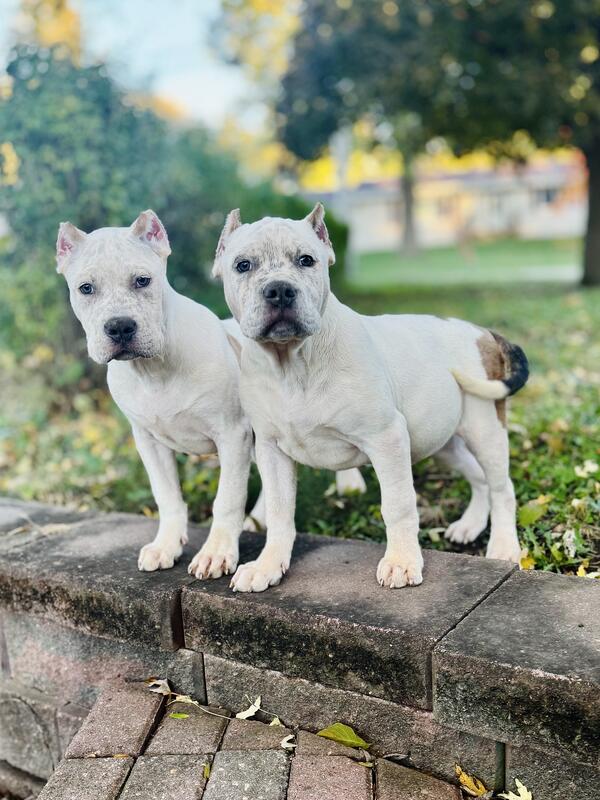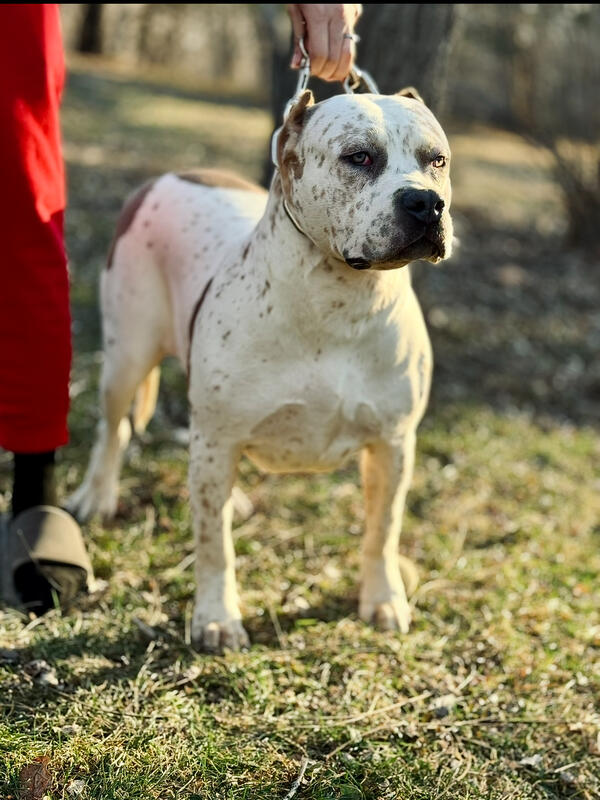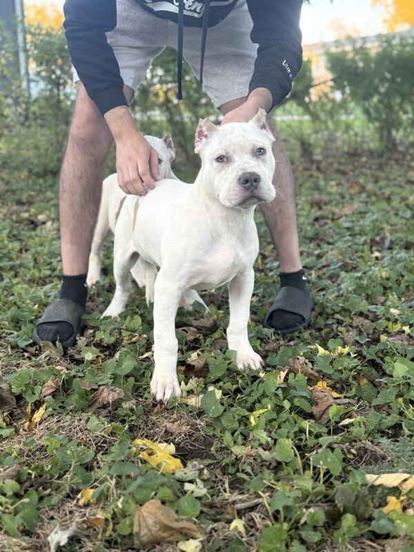 message memorisabullies about this ad 2 XL American Bully male pups available. ABKC registered. Both have heavy ticking on them. $1000 for pet home and $2000 for breeding rights. Ears already cropped. Parents pictured. |