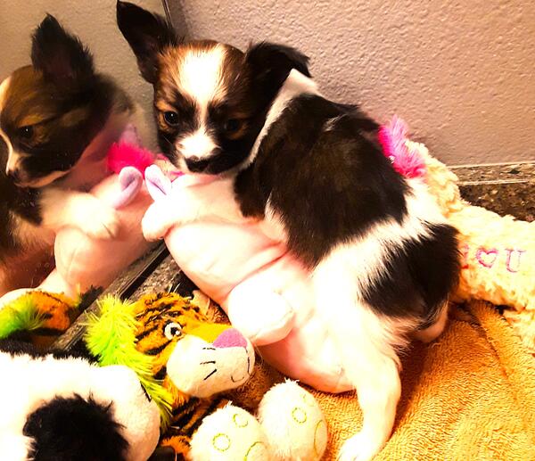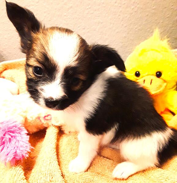 message papillonranch about this ad Goldie got her name from her GOLD colored eyebrows and accents and is a black and white, chestnut brown and golden purebred female with some tan accents around eyes, ears and cheeks and has GREAT markings and new pics just posted. She was born on September 27, 2025. She had her dew claws professionally removed and her 1st vet exam and a second vet exam, and will have her 1st puppy shot and de-worming on December 3, 2025. (Worming is a state requirement. We have never had a puppy showing signs of worms but we obey the laws Our vet must pronounce her in excellent health and ready for her new home prior to releasing her. She will be thoroughly checked for puppy murmurs, joint, and other problems. She will be a lot of fun! All pups will be heavily socialized prior to letting them go and most go for therapy work or very good family homes and we begin the potty training process the day they are born. We finance for up to a year at 0% for homeowners in Colorado or southern Wyoming. We deliver FREE to your home in a wide area. We only breed papillons. Most puppy mills breed more than one breed of dog and sell their dogs cheap under 2,000. We lose money on our pups as most go for therapy work and we don't do it for the money. It is cruel to ship dogs and pups in cargo but it is possible to fly with them at your seat on some airlines. We are a hobbyist breeder and don't make a profit on our pups and our pups have been known to save lives and are being used for children with epilepsy, vets with PTSD, stroke victims, etc. We are very reputable and can furnish references. We use only the services of the most qualified and licensed veterinarians. We charge a little more for females only 545 down to hold one. We currently have both males and females and assorted sizes. This beautiful female will probably be under 6 lbs when full grown and is just too cute, cuddly, very sweet, and playful. She is also a feisty little girl but loves to snuggle with her mom and siblings. BEWARE OF BUYING PUPS FROM COLORADO as Colorado has strict laws against breeding and the breeders if not licensed could be in HUGE trouble and those buying from them might lose their deposit and/or their puppy. We don't have to worry about the laws in Colorado. We have been tutored in veterinary care and our veterinary clinic will thoroughly check our pups for joint problems and heart murmurs and the pups will be pronounced free of any such conditions and in excellent health before we let them go to their new home. We also house our pups with plenty of room to run and play and only kennel them when traveling. It is very important to look for a purebred as anything else is most likely coming from a puppy mill. Exercise is very important for the pups and all our pups get plenty of exercise. Call for price and selection after 3:00 pm 307-316-0844 phone # doesn't receive texts. for texting try 303-987-3234 but please call 307-316-0844 instead. message papillonranch about this ad |