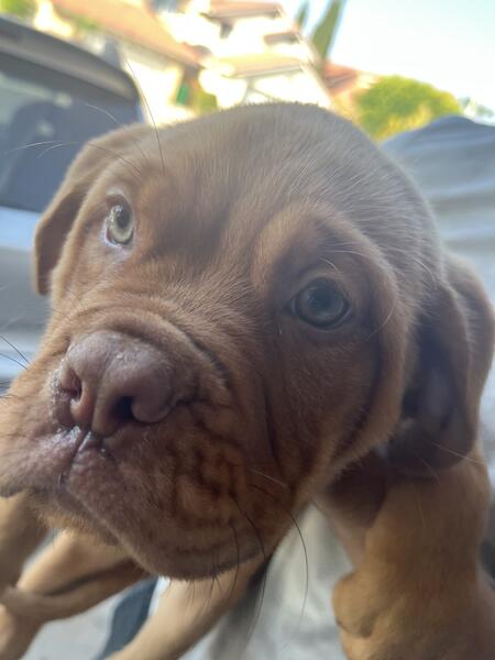 message here4dogs about this ad We have 4 beautiful French Mastiff (Dogue de Bordeaux) puppies availableAKC registered, healthy, and ready for new families! These large, loyal, and affectionate dogs make incredible companions and protectors. Puppy Details: Breed: French Mastiff (Dogue de Bordeaux) DOB: March 2025 (currently 4 months old) Available: 4 females Color: Light brown & red AKC Registered Health: No issues observed; full vet check, deworming, and vaccinations Temperament: Playful, alert, and affectionate great for families or individuals |