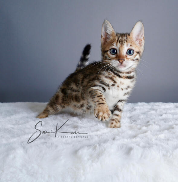 message akerrsbengals about this ad We have several retired adult cats and some older kittens ready for new adventures. A-Kerrs is an award winning, vet inspected cattery with years of experience. Located in Cardington, Ohio, we pride ourselves on comprehensive health testing of our breeding cats, HCM, PRA-b, PK-Def, OFA hips. Kittens have had at least two sets of vaccines and already spay/ neutered, TICA/ CFA registered, microchipped and come with our 5 year health guarantee. |