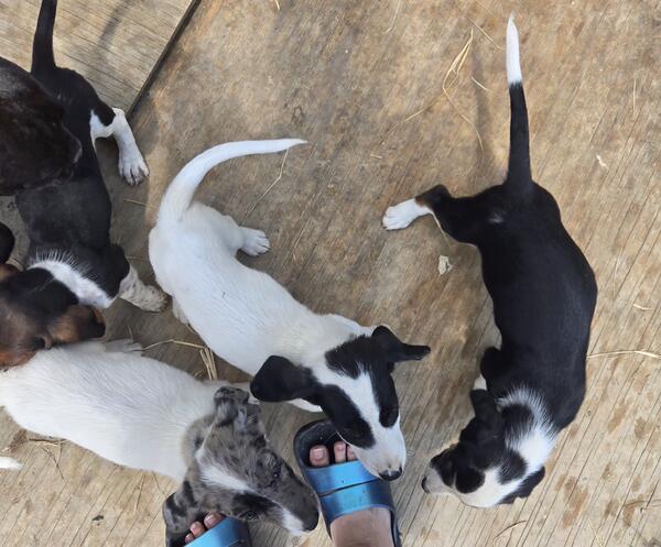 message lexie374 about this ad First shots and dewormed. 2 males built like basset but with more aussie facw. Introduced to goats, a pig, and chickens. Used to other dogs and cats. Used to kids. Farm raised pups. Very sweet and playful. |