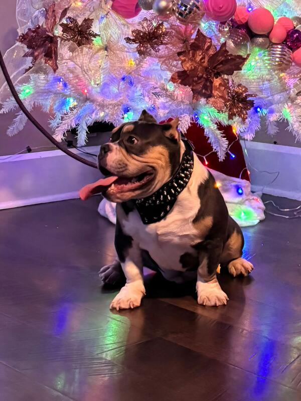 Beautiful tricolor bully open for stud 250$ lock in 750$ when ever you female is ready or 700 pay in full