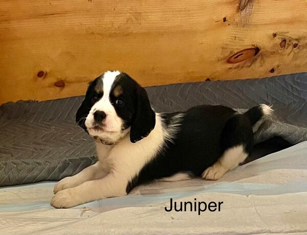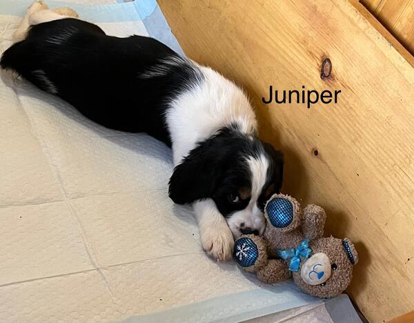 message jaja about this ad Born 1/17/25. One black/white tri girl and one black/white male left. Parents on premises. Up to date on dewormings and vaccines. Pedigrees, health records, AKC Registration papers, and vet checks come with puppies. |