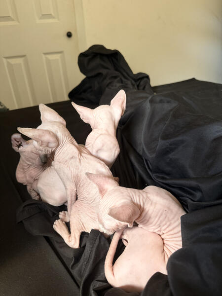 message bolbol about this ad Meet my adorable Sphynx babies 3 females and 1 male, all 3 months old. Theyre playful, affectionate, and absolutely love to cuddle! Health & Care: Litter-box trained Eating solid food Raised indoors in a clean, loving environment They have amazing personalities curious, sweet, and used to human contact. Perfect for families or anyone who wants a loyal, loving companion. Located in Miami, FL Message me for more photos, videos, or details! (708) 522 - seven 5 eight 3 Serious inquiries only, please I want them to go to caring, responsible homes. |
