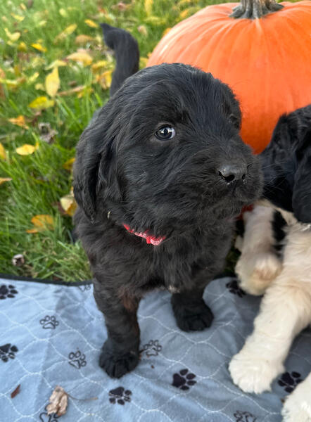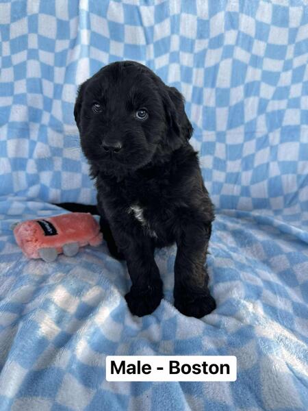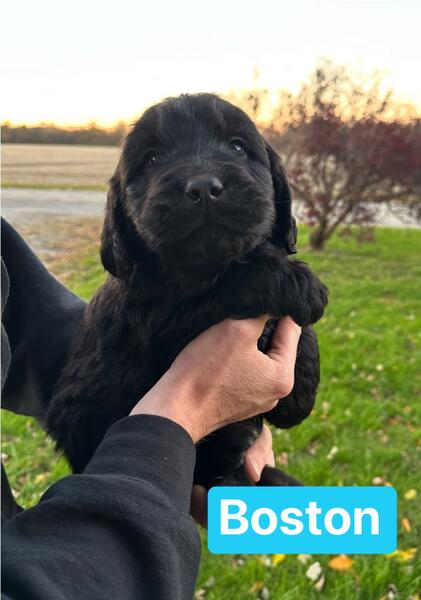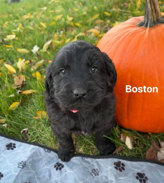 message wldsn1541 about this ad Boston is always happy. His tail is constantly going. He loves attention, loves being around people, and has a naturally cheerful personality. About the parents Mother: Sadie (AKC Newfoundland, ~100 lbs) Father: Andre (AKC Standard Poodle, ~65 lbs) Parents are AKC registered and health tested with wonderful family temperaments. Go-home timing: Thanksgiving week - the perfect season to welcome a loyal, gentle, intelligent pumpkin into your family. What to Expect from Our Puppies~ ~ Estimated adult size: 70 - 90 lbs (large breed) ~ Coat & shedding: Lower-shedding wavy/curly coats; while no doodle is 100% hypoallergenic, they shed less than pure Newfoundlands ~ Raised with love: Early handling, socialization, and exposure for curious, friendly temperaments ~ Parents: Health-tested AKC dogs with champion lineage ~ Pet homes only: Spay/neuter contract required ~ Vet care: Examined by our vet, up-to-date on age-appropriate vaccines & deworming ~ Health guarantee: 1 year, written ~ Registration: Newfypoos / Newfiedoodles are a mixed breed - puppies are not AKC registrable Now accepting $200 deposits to reserve message wldsn1541 about this ad |