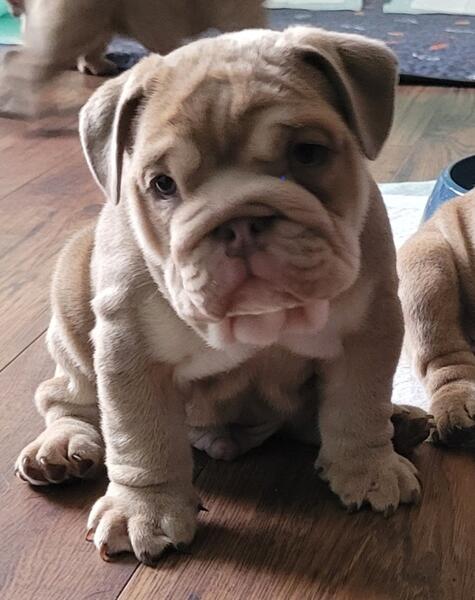 message lucyhaspuppies1 about this ad Meet our stunning full-suited tri color English Bulldog puppies! These beautiful pups feature rich, vibrant markings and the classic stocky build that defines the breed. All puppies are AKC registered, vet checked, and up to date on vaccinations and deworming. They are raised in a loving home environment with plenty of socialization, ensuring playful and well-adjusted temperaments. Please ask about shipping, if needed. |