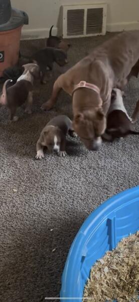 message deesingle09 about this ad Brown and white female Merle bully D. O. B 4/22/25 No papers Puppy is the last of a litter my son who is now deceased who was a breeder of Merle bullies. |