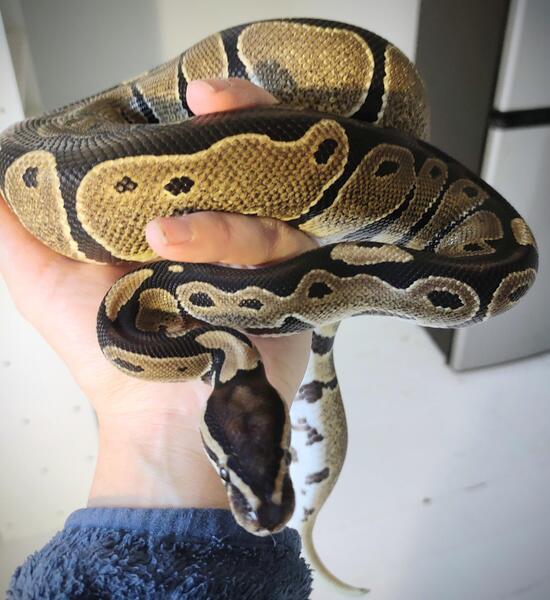 message cuttlefish22 about this ad Evie is a 2yr old, confirmed female ball python. She is het axanthic (VPI) and het albino and came from Tru Ball Pythons, a breeder in the Chicago area. She is healthy and weighs around 1200grams right now. She eats f/t rats and rarely misses a meal. She is good for handling and is generally a very easy snake. |