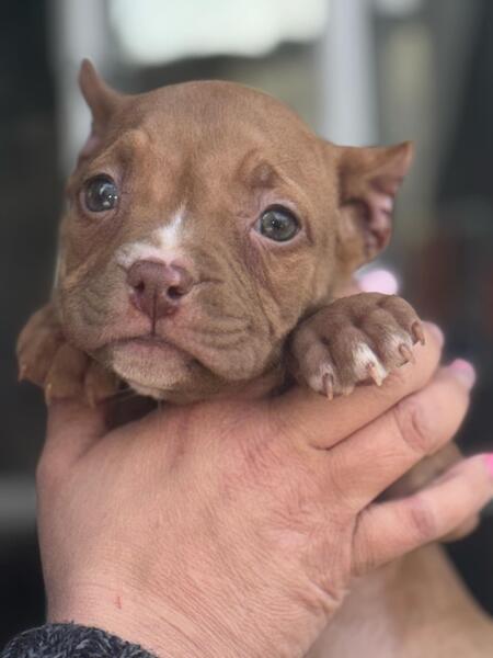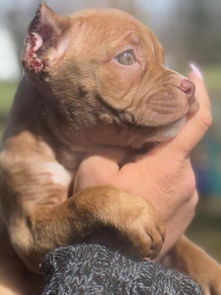 message mekhi2024 about this ad Hey shes only 5weeks right now but we are taking deposits. Shell have her first shot before leaving shes already been dewormed nd she will be cropped on the 14th of this month. If your interested u Can u reach me at 419-909-2197 or 567-333-0416 thank you. Mom Black Tri Dad Blue Brindle |
