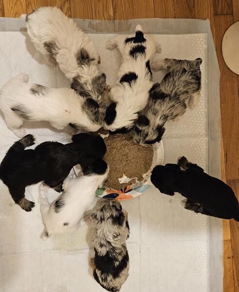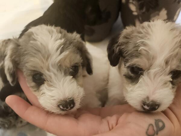 message crystaldonnel about this ad Mini Schnoodles born 10/15. Will be ready for homes the week before Christmas. Hypoallergenic & Non shedding. Will have tails docked, first round of shots & dewormer. 6 boys & 2 girls. Will be 10-20 lbs grown. Located in Paris, Ky. |