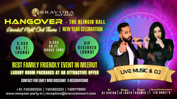 message bravuraresort about this ad Meeruts Biggest & Craziest New Year Celebration (HANGOVER - THE BLINGIN BALL) is back with Grandest Night Club Theme Set-Up ever seen in Meerut & NCR. Highly Secured & Family Friendly Event. Bravura Gold Resort has a track record of hosting the most Successful New Year Event in Meerut. Just come and celebrate this Grand New Year Party with your family & loved ones at Bravura Gold Resort with highly energetic DJ & Singers, who will set the dance floor on fire DJ Night Party filled with Massive Entertainment, Fun, Music, Dance and a lot of amenities like Unlimited Snacks, Drinks, Lavish Buffet, Blasting Pro DJ, Barbeque and Bonfire. So, dont wait and get your tickets to be a part of such a great event. Couple Entry at Just Rs. 7999 Only. For more info, please visit us at httpwww.newyear-party.in or book your tickets at or Contact at +91-7455802255, 7455802233 & 7455802240. |
