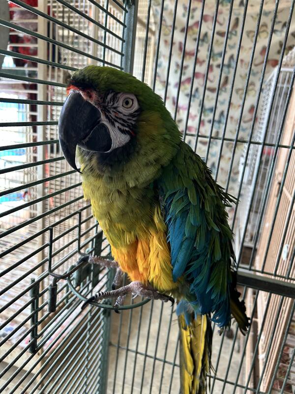 message parrotlove008 about this ad 1. Hybrid miligold macaw male believe and is around 10 years old not a plucker just not friendly with work could be or breeder ,no cage serious people only please 2,500.00 o/b reasonable |