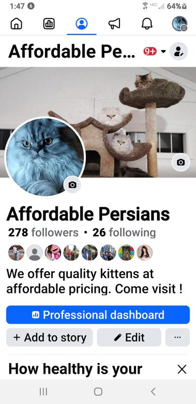 message kmcpherson1973 about this ad Persian kittens Look me up on facebook at Affordable Persians or text me at the # in pic. I have 1 female mink point and 4 males available~ 2 blue points, 1 flame point and 1 tuxedo. If they are posted they are still available. . Located in Lexington NC. Come visit ! 1 kitten is ready now. The rest will be ready to go July 2nd. Please call or text 3363004226. New litter born June 19th. Watch my page for pics. |