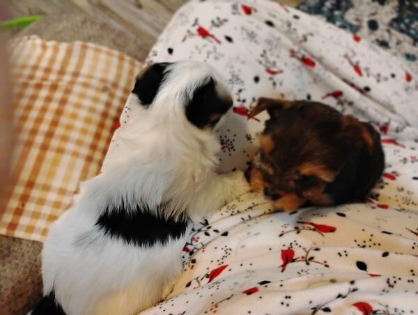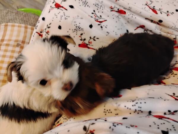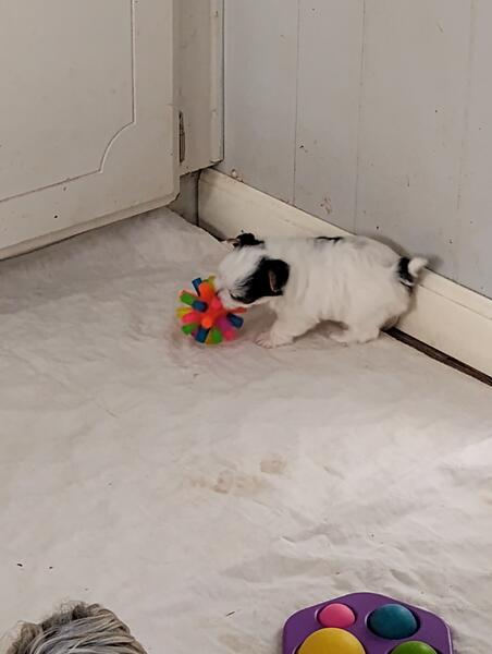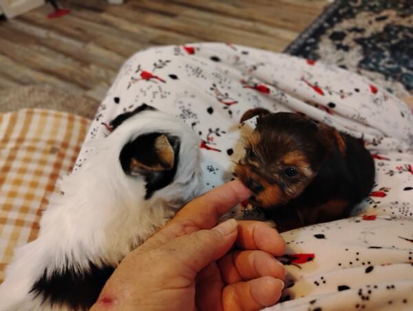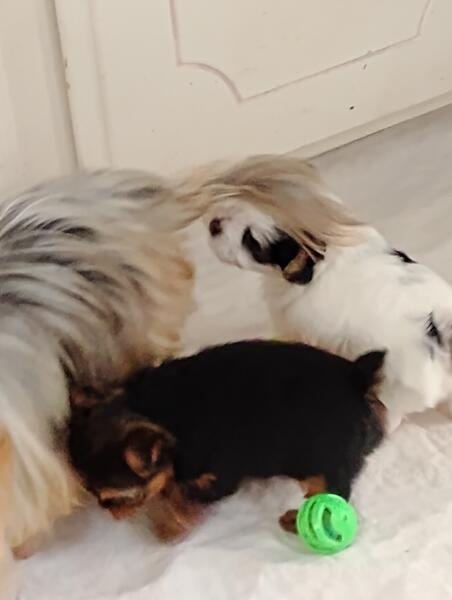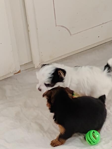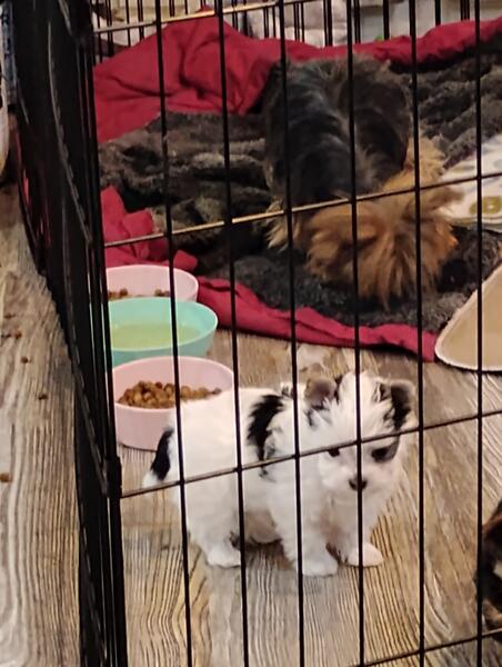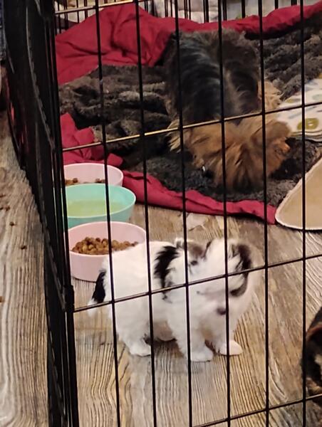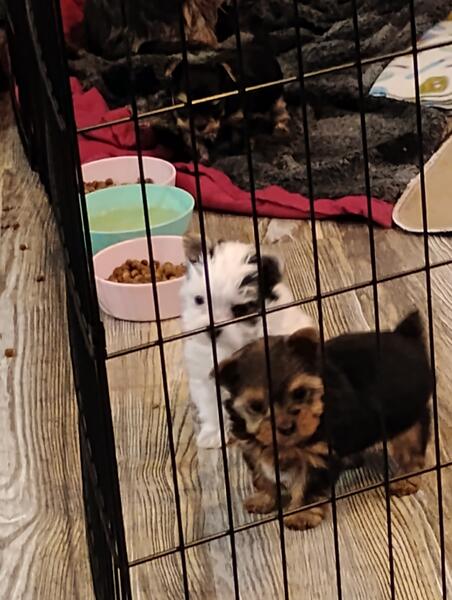 message sharens52 about this ad I have two small Yorkie puppies born September 26. One traditional male Eli and one female Izzy who is white with black spots. Their tail and due claws are done. Mom is grey and cream and weighs four and a half pounds. Dad is three and a half pounds and is a blue merely. The puppies will be ready November 22, 2025. They will be micro chipped. I'm located in Hillsdale Michigan and you can text me at 517-212-0538 |