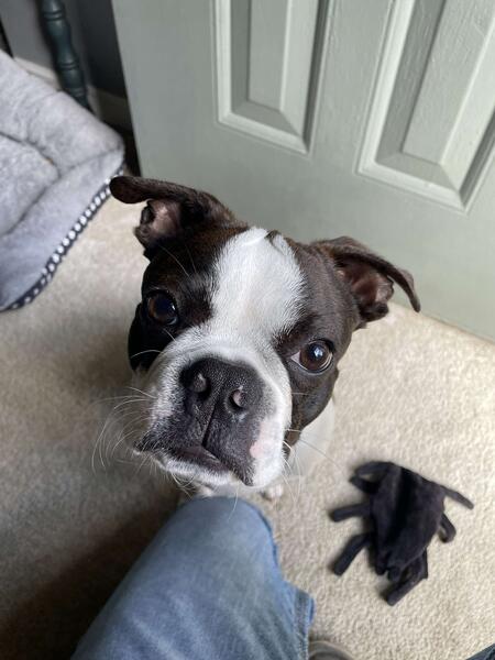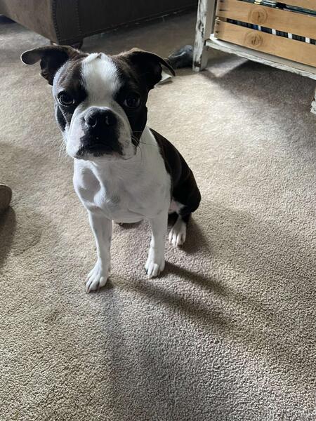 message lndsml3743 about this ad Male Boston Terrier in need of a new home. He is 10 months old DOB 1/23/2025. He is brindle and white. Great with kids and other animals. Please only contact me if you are truly interested in giving him a good loving home. |