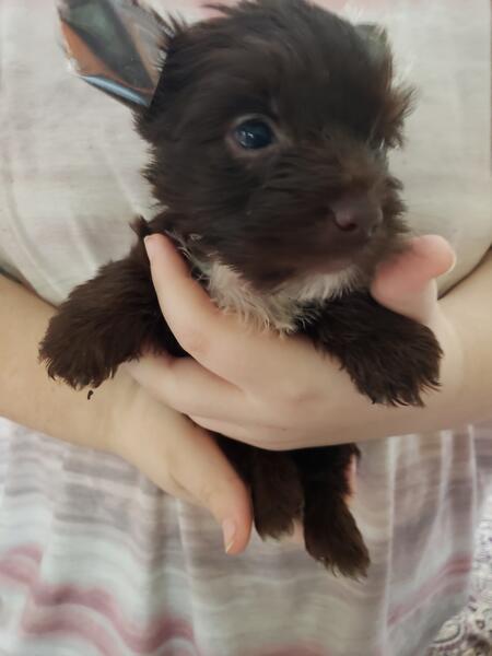 message belindastewart about this ad CKC reg dark chocolate Male yorkie out of a kb black and a traditional that throws chocolate and parti ready 1st week of March for more information please text or call 865 7 zero 5 1 4 two 8 thank you Belinda |