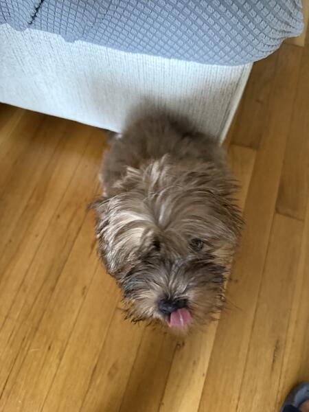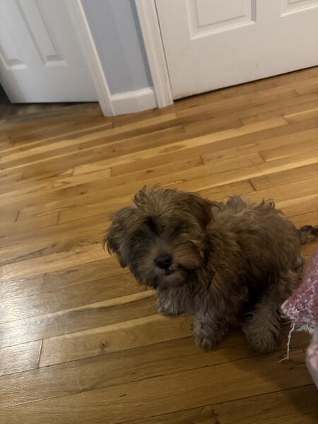 He is a 2-month-old male puppy born at home, very playful and affectionate.