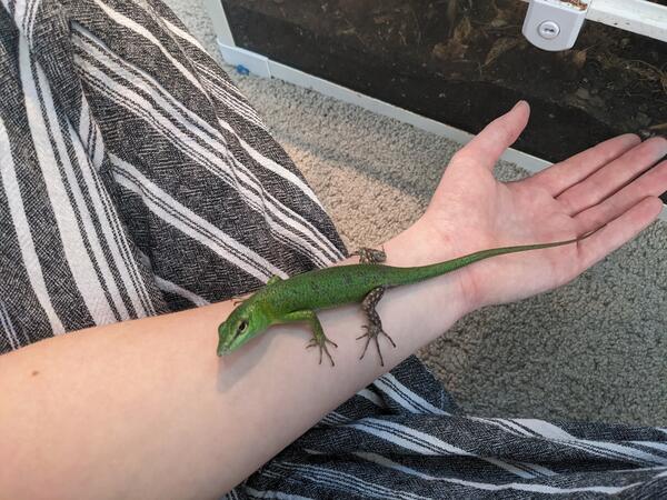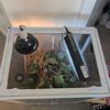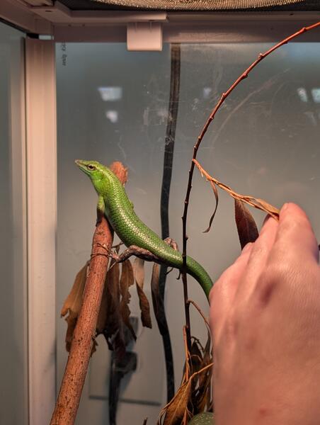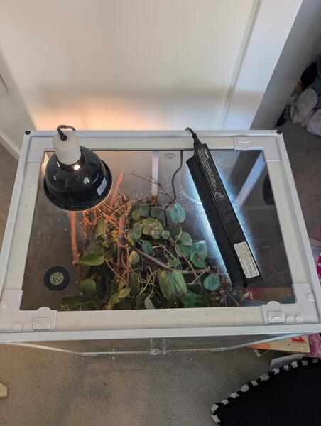 message rickoliver3 about this ad Healthy Emerald Tree Skink for Sale. I am only selling Azula my pet tree skink because I am going away to school. I am 80% sure he's a male. He is lively, but shy. He will come onto your hand once he is used to you. I would like to sell the terrarium along with him as it has his perfect habitat. The terrarium is a glass enclosure (3 feet high, 2 feet wide and 2 feet long) with a metal screen on the top. His habitat in the terrarium includes good soil for plants with tree branches and live plants specifically for skinks ( a Philodendron Brasil Heartleaf hanging Plant, Ficus Lyrata Fiddle Leaf Tree His habitat is complete with a UVB lamp, alongside a heating lamp, a humidity and temperature thermometer that sits on the screen top of the terrarium. Finally feeding tongs and a Pangea gecko diet along with small mealworms is included. Asking $500 or best offer for everything. |