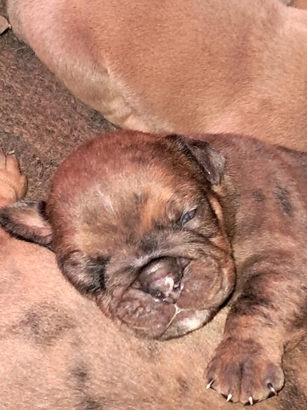 message mmmbulldog about this ad Litter is finally here! I have both parents. This will be the last litter. Puppies will be vacinated and dewormed and registered with full rights. I will be taking deposits 300 to hold your puppy. 2512139615 please text or call. |