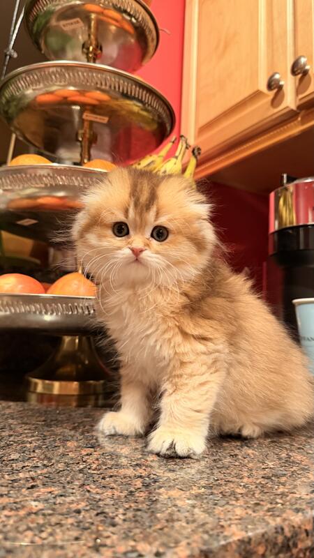 message bchkkr5021 about this ad We have 2 kittens available. A Scottish Straight golden girl and a Scottish Fold golden brown boy. They was born on 11/10/2025. They already litter trained and eating a wet and dry food. The kittens are very playful and ready for a new lovely home. Their parents have a pedigree. Call me 773-9seven1-three3-1one |