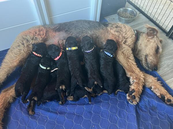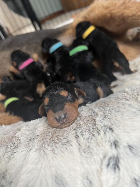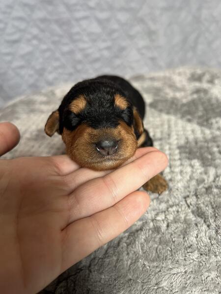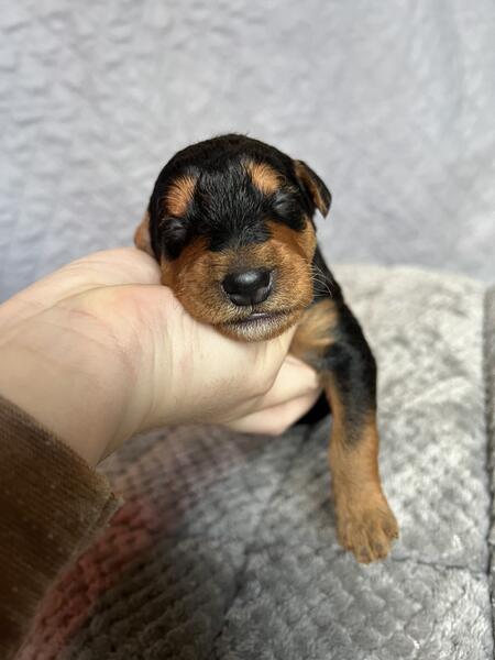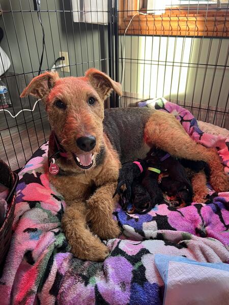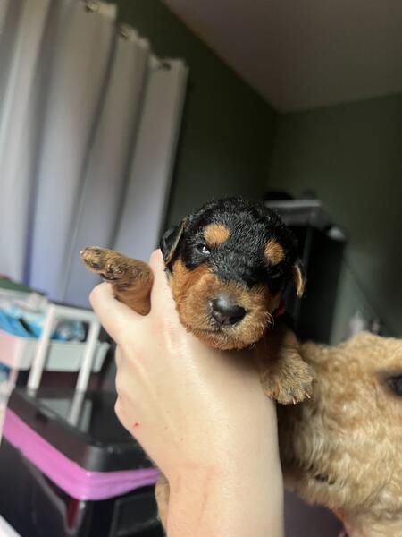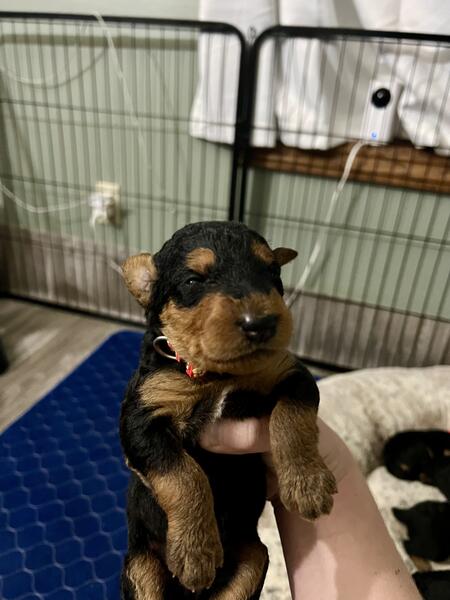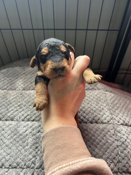 message daarieen about this ad 8 girls, 1 boy AKC Airedale Terriers OFA tested on hips/elbows & health tested First round of shots & dewormed Microchipped Tails docked & Declaws removed Mom & Dad are in home Mom is 55lbs, Dad is 68lbs Will have an early introduction to grooming! Airedales are a great breed if you struggle with allergies! Will be ready December 23rd Contact me at darienlowe15@gmail.com |