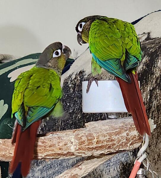 message snow13 about this ad I have two Normal Colored Green Cheek Conures weaned and ready for their new homes. Babies were hand fed and are weaned onto pellets and fresh chop. I am in the Williamsburg Virginia area. Contact me for more information. |
