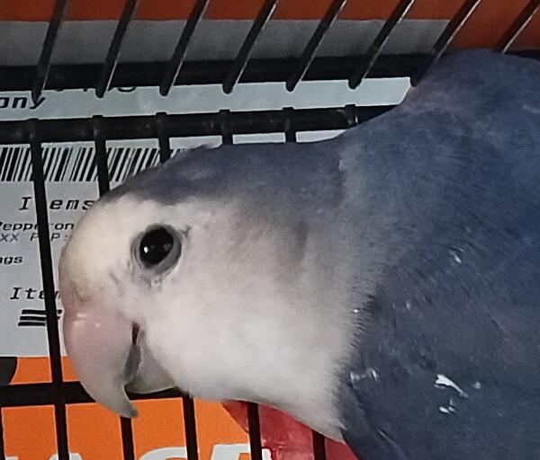 Clear face violet peachface lovebird. Not sure on gender. About 12 months old.