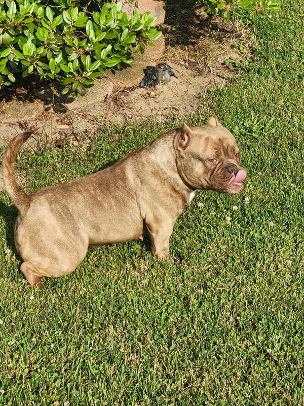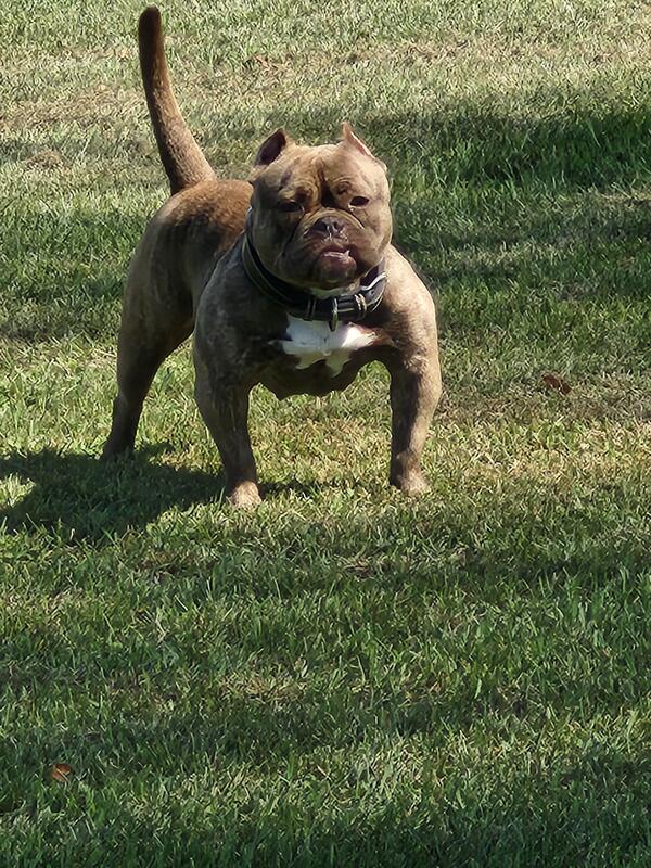 message redwhiteblue about this ad Female bully Born April 1st she is 2yr old will be 3 in2026 Very sold bulid pictures don't do her justice. Just started her 2 heat cycle. |