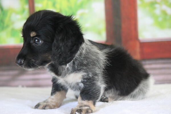 message kando about this ad Delta- F - Black & tan piebald long coat. Born 7/1/2025, ready to go apx. 9 weeks on one 9/3/2025. From the litter of Daisy (black & tan long coat 10 and Rolex (chocolate & tan dapple long coat 12 APRI registered, will be up to date on vaccinations, dewormed regularly and microchipped. Comes with health warranty, registration, health records, starter food and optional microchip package for $30. Microchip package includes dual ACA registration, microchip, lifetime microchip registration, online training video course. Located an hour east of Dallas, I-20 E. Price: $1400.00 |