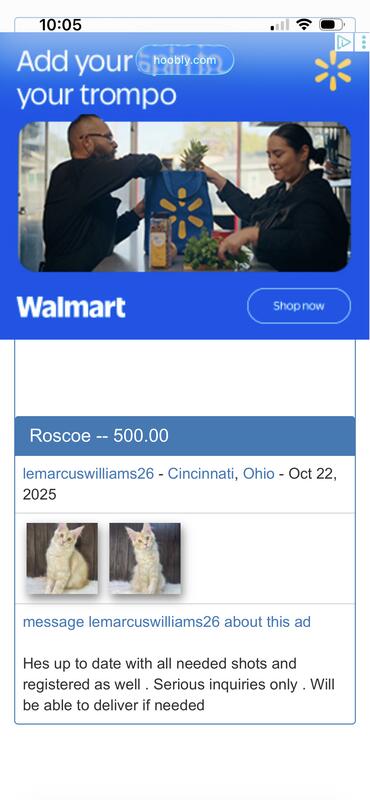 message jcraycraft about this ad This is a scam! Contacted Marcus Williams about one of the kittens. Doesnt really have them, will lead you on, cant FT for proof of having the kittens, wont show Tica registration. His number 1(855)719-6733 SCAM SCAM BEWARE SCAM SCAM |