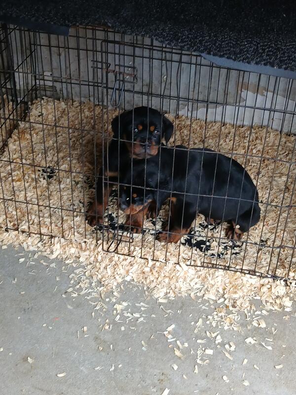 message goddbody about this ad I have 2 12 week old puppies male and female available shots are up to date tails are docked big puppies blocky heads very smart pups ready to go there forever home |