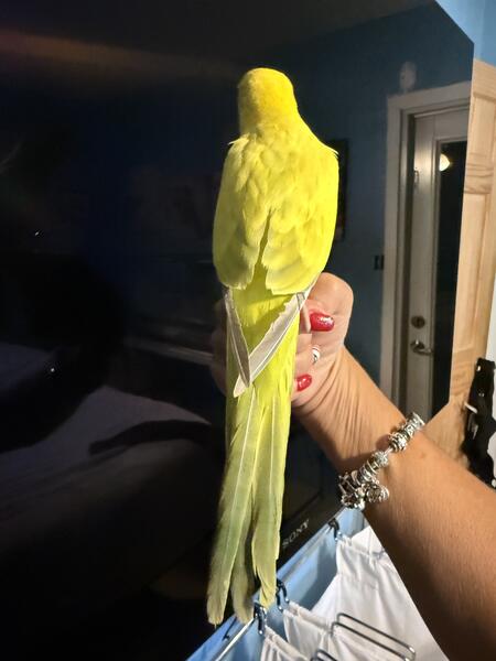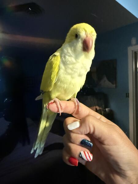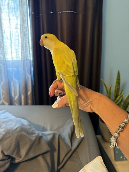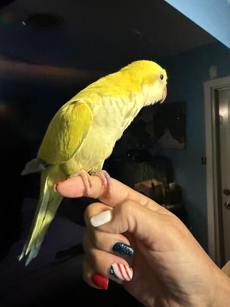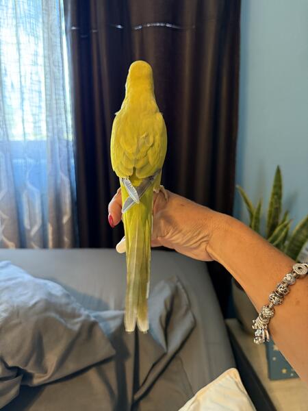 This beautiful baby, exotic color, neon, yellow and neon green Quaker female DNA tested.