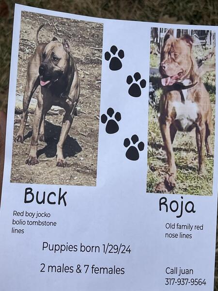 message indy500dogos about this ad Have females 2 males aviailble! Male number one is mostly black with a hint of brindle male number 2 is brownish brindle 3red fawn females and 2 fawn and one uniquely brindled female whom was the largest when bornthey are absolutely adorable paper trained at 15 weeks old! Dam is OFRN total package good with kids house hold family members.protection trained has a high orey drive! Male is a good dog high prey drive good with kids hes red boyjjocko bolio and tomb stone Price is $500- my bet can crop ears for $250 they have 1st shots and have been dewormed twice! Raised in our home with our 6 yr old! These pups are well mannered for young pups intelligent! 317-937-9564 please call no text! Working/ Active homes preferably military and law Enforcement Discount! As well as hunters These pups are true American oit bull terriers versatile will perform any function play many roles And excel at any task set fourth of them! Search and Rescue therapy To family guardian/Companion workout partner Have videos upon request call 317-937-9564 message indy500dogos about this ad |