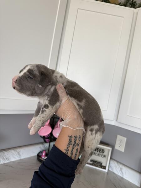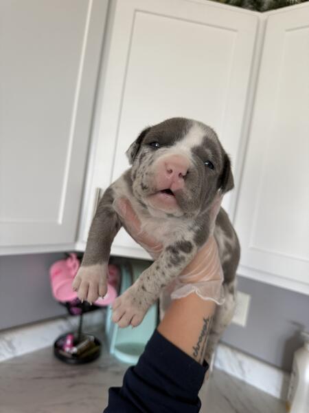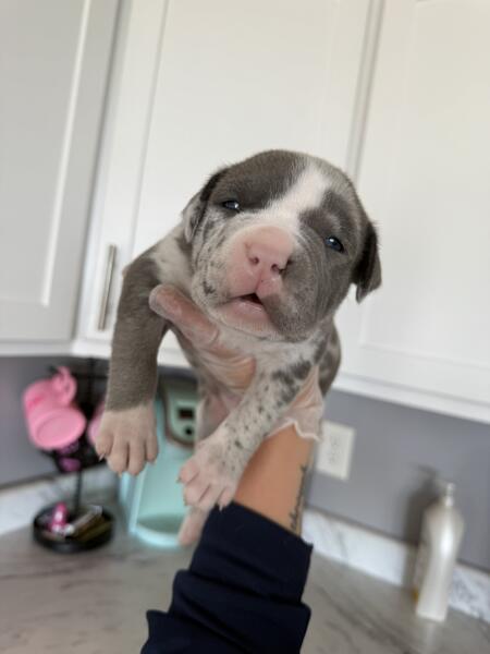 message pwrtr233 about this ad (Roscoe X Lila ) We have 4 big males off this litter two Merle and two blues they are ABKC will be up to date on shots and deworming also ear cropping is available as well mom and dad on site this is a repeat breeding since the last one turned out amazing can provide pics of the last litter as well we are taking deposits now for any questions or information call/text 740-8one7-one13four Blues 3500 Merle 4500 Facebook: madison hoar Facebook page: Powertrain bullies TikTok: Powertrain bullies |