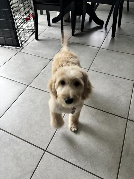 message rovira91 about this ad She is not spayed. Super sweet pup. Crate and potty trained. She does amazing with kids, babies and other dogs. She also does well with baths and grooming. Both parents are golden doodles 3219782027 |