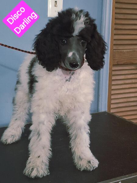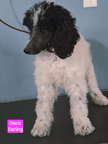 message adreamcometrue about this ad AKC female Standard Poodle Pup code Named Disco Darling. AKC female Standard Poodle Pup born Aug 28 2025 ,current shots, full breeding rights Champions in pedigree Sire Lamborghini is a Service Dog next to wheelchair. Both parents show quality. Mother White/black , both parents with multi-Champions in both Akc & UKc of Parti- Poodles & solid color Poodles. We have record of 10 generations . Juliette - Dam above. |