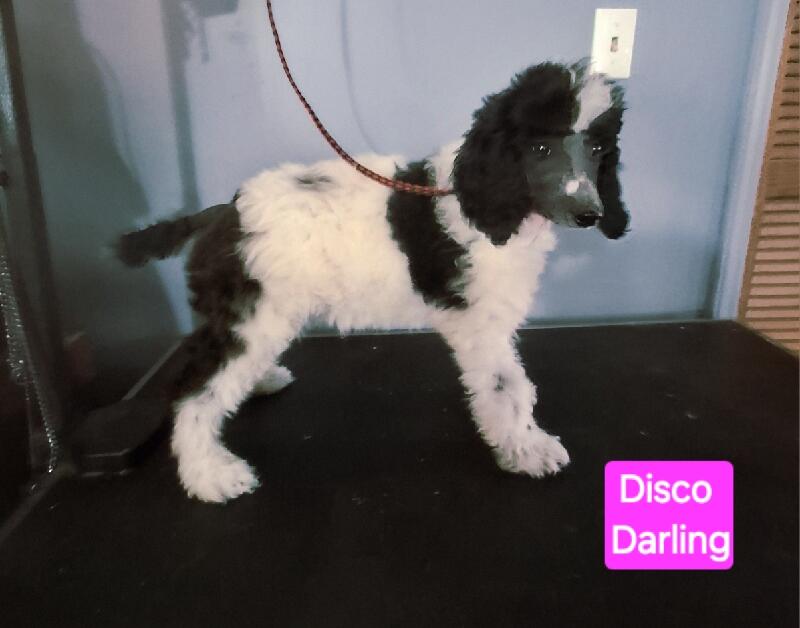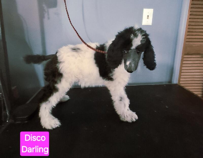 message adreamcometrue about this ad AKC female Standard Poodle Pup code Named Disco Darling. AKC female Standard Poodle Pup born Aug 28 2025 ,has had 4 five-way puppy shots, full breeding rights multi-Champions in pedigree Sire Lamborghini is a Service Dog next to wheelchair. Both parents show quality. She is Pet quality as she does not have scissor bite for showing. Mother is White/black , both parents with multi-Champions in both Akc & UKc of Parti- Poodles & solid color Poodles. We have record of 10 generations . Juliette - Dam above. She is a lower special buy as pet. |