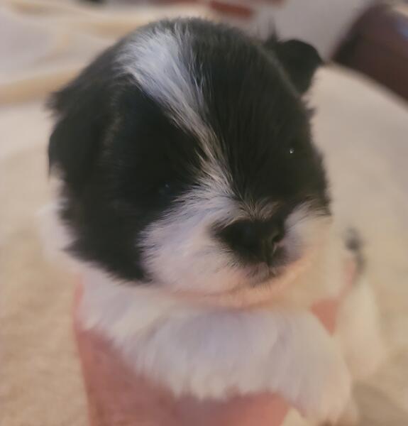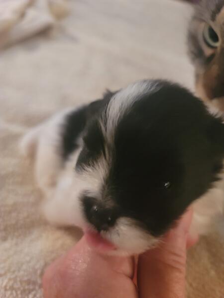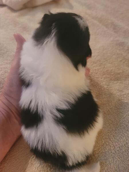 message dem1361 about this ad Black and white parti male 3 weeks old AKC registered Vet checked shots and deworming upto date micro chipped puppy care package Ready August 22,2025 Deposit $900 |