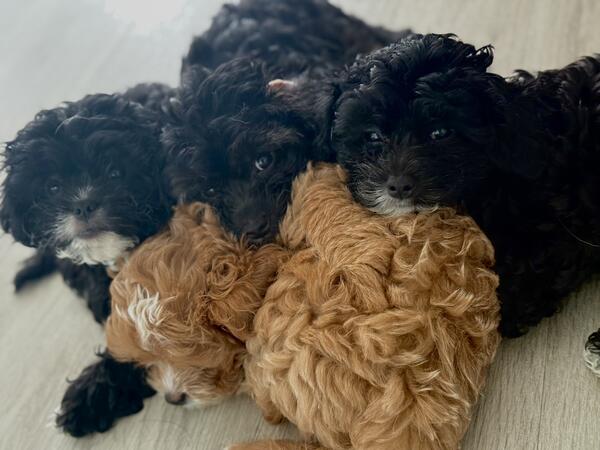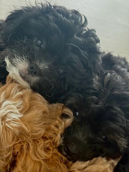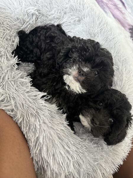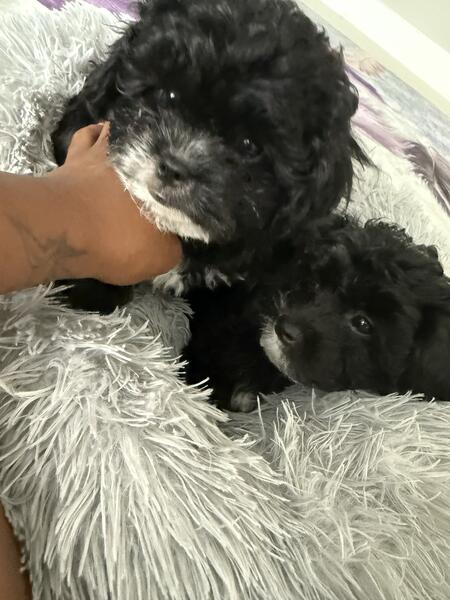 message poochinmommy about this ad Oreo and Shadow are our adorable all-black Poochin (Poodle x Japanese Chin) twins, each with the cutest little white chin that gives them a one-of-a-kind look. At 9 weeks old, both are full of sweetness and charm, but with their own unique personalities. Oreo is the playful onecurious, energetic, and always ready for adventure. He loves playtime just as much as cuddle time and is thriving on solid foods while making great progress with potty training. Shadow, his twin, is a little calmer but just as lovable. He enjoys a slower pace, preferring cozy snuggles and quiet moments, making him a wonderful choice for families who want a more laid-back companion. With their soft, hypoallergenic curly coats and affectionate personalities, these pups are the perfect mix of fun and loyalty. Both are ready to bring love, laughter, and companionship to their forever homes. |