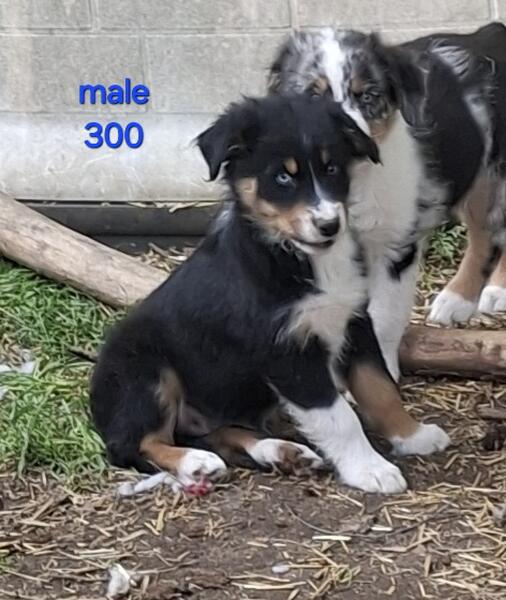 Aussie pup in Hudson Michigan. May be able to meet. Male has 1 blue eye. 300.00 each.